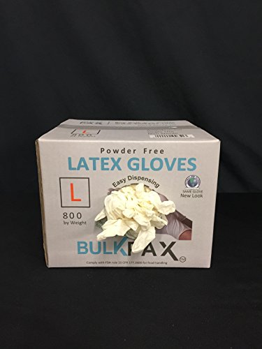 Bulk Pax Powder Free Latex Gloves, Large, 800 piece