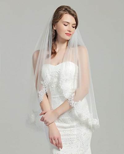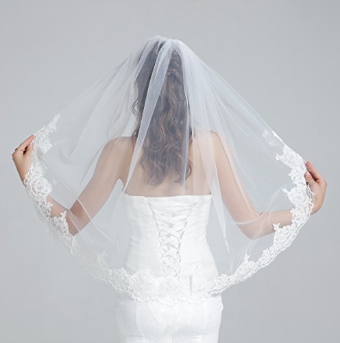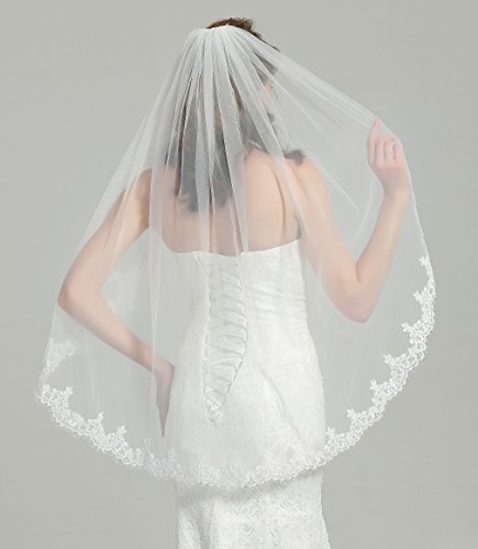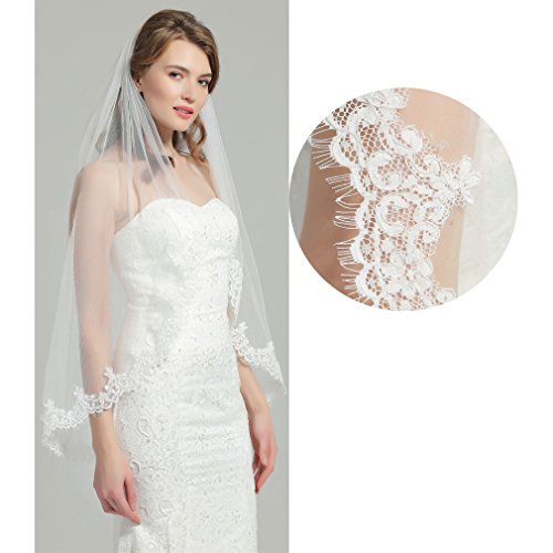 Binding : Apparel Product Description This is a beautiful wedding veil with eyelash lace trim.The size is 37" x 52",could be a Fingertip length veil.It features a 3"-5" Alencon lace trim with eyelash.The color of the veil is available in white and ivory (The veil in the pictures is in ivory color).This veil is made of soft bridal illusion material that allows the veil to drape beautifully.A metal comb is attached to the veil for easy positioning. HOW?TO?CARE?FOR?YOUR?VEIL HANG:Upon?receiving?your?veil,carefully?unfold?it?and?HANG?from?the?center?of?the?comb by?clipping?the?comb?on?a?hanger,?using?THE?clip.If?your?wedding?is?soon?approaching,keep?the?veil?hanging?so?that?the?folds,?wrinkles,or?creases?from?shipping?may?fall?out?of?the?material.The?longer?it?hangs,the?more?the?wrinkles?will?naturally?fall?out.We?suggest?protecting?your?veil?from?dust?by?placing?it?inside?a?Protective?Garment?Bag,or?by?gently?covering?it?with?a?cotton?pillowcase?or?sheet. STEAM:To?soften?up?the?veil?after?shipping,and?for?hard?to?remove?wrinkles:Veils?may?be?steamed?with?a?home?steamer?or?by?a?professional.Or?you?may?even?wish?to?hang?your?veil?in?the?bathroom?while?running?a?hot?steamy?shower. Steam?is?the?best?way?to?remove?wrinkles?and?soften?the?veil!Let?the?veil?completely?cool?before?moving?it. About BEAUTELICATE BEAUELICATE is a trademark that is registered in the United States and European Union.Having been in manufacturing clothing and accessories for girls and women,we have our own professional and experienced ResearchDevelopment Department.New products with diligent design and superior quality will be released every season.When buying BEAUTELICATE products you will get excellent quality and best customer services. *Any infringement of BEAUTELICATE trademark will have to bear legal responsibility!* 0