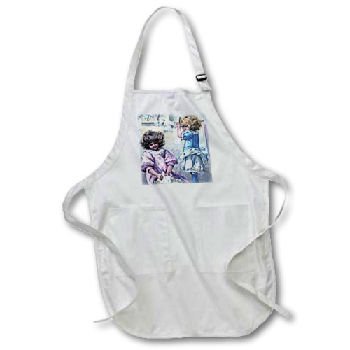 3dRose apr_34787_1 Little Girls on Laundry Day-Full Length Apron with Pockets, 22 by 30-Inch, White