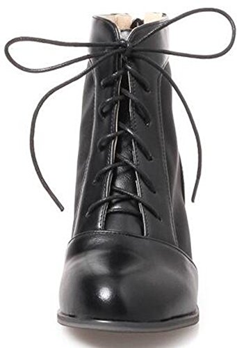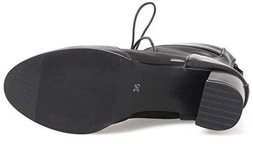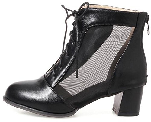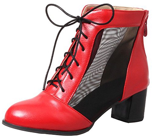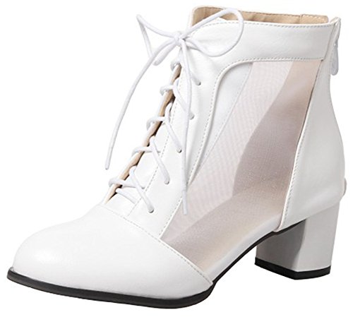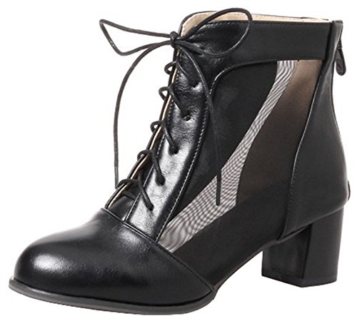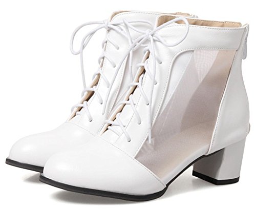 (Mofri)/Women's/Boots/DIRECT FROM USA/Mofri Women's Trendy Mesh Gauze Splicing Block Medium Heel Lace up Ankle Booties Round Toe Back...