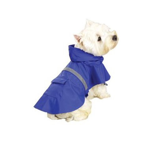 Product Description Keep Dogs Dry With Our Guardian GearTM Rain Jackets. Our heavy-duty, waterproof vinyl Rain Jacket keeps pets dry in wet weather and saves owners from the hassle of wet dog smell and extra coat maintenance. Features a drawstring hood, leash opening, and a handy back pocket with Velcro® flap closure. Elastic leg straps (easily removable) and adjustable Velcro® belly strap ensure a secure and comfortable fit. Added reflective strip on back provides extra visibility in the rain. Fits nape of neck to base of tail 12" - 16".