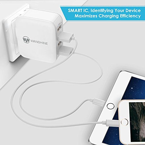 Wanshine 31W 6.2A Universal 4-Port USB Travel Wall Charger with Hidden LED Indicator Light - White