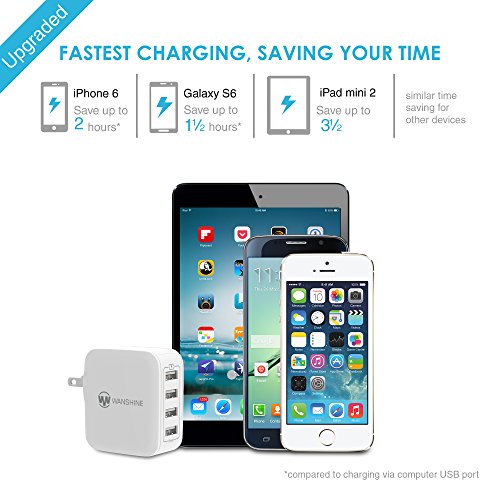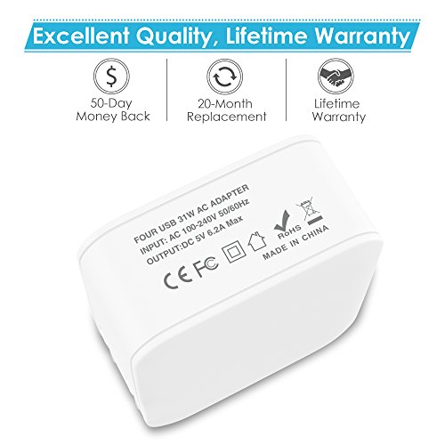 Ultra-Fast: 31W/6.2A 4-USB output lets you charge any four smartphones or tablet devices simultaneously at the fastest speed.