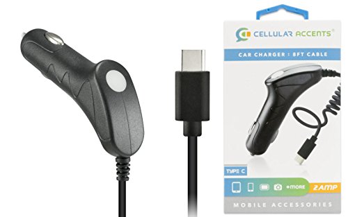 -. Feature : Car Charger with Blue LED / Type C Reversible Connector USB-C 3.1 / 2000mA, 2AMP / Premium Internal Components - IC Technology / 8FT Coiled Cable, Blue LED