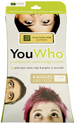 YouWho 4-Unit Professional Name Badge Kit w/ Magnetic Fastener (Gold/Laser)