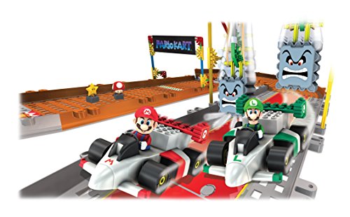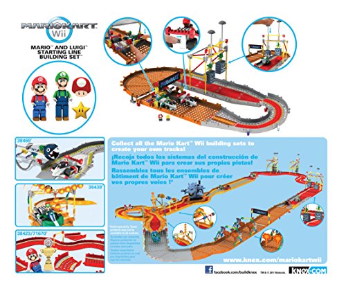 -. Binding : Toy -. Brand : K'Nex -. EAN : 0110000184874 -. Feature : Build Mario in his SP.R.Inter Kart and Luigi in his SP.R.Inter Kart / Buildable Starting Line / Mystery Box sound module with start-up sounds from the game / 2 Super-fast, battery powered motors for karts and 2 collectable items: Mushroom and Star / 16 pieces of buildable track create a closed loop -. HardwarePlatform : 3DS -. IsAdultProduct : 0 -. IsAutographed : 0 -. Label : K'NEX -. LegalDisclaimer : Ages 6+ -. Manufacturer : K'NEX -. Model : 38435 -. MPN : 71675 -. NumberOfItems : 1 -. PackageQuantity : 1 -. PartNumber : 71675 -. ProductGroup : Toy -. ProductTypeName : TOYS_AND_GAMES -. Publisher : K'NEX -. ReleaseDate : 2011-07-01 -. Studio : K'NEX -. Title : Nintendo Bowser's Castle: Mario and Luigi at the Starting Line Building Set, 284pc -. UPC : 744476384355 -. Warranty : Guaranteed against manufacturer defects