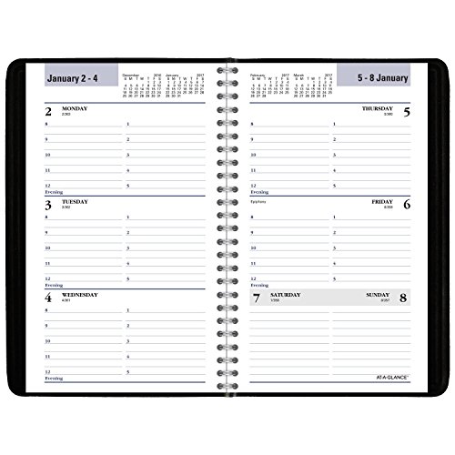 -. Feature : Stay on top of meeting times, special events and appointments with this handy, weekly appointment book; Made in the U.S.A. / 12 months of planning power, January-December; 4.88 x 8 inch page size / One week per two-page spread; Hourly appointments, 8 a.m.-5 p.m., Mon.-Fri.; Julian dates / Past, current and two future months reference / P.R.Inted on quality paper containing 30% post-consumer waste