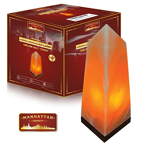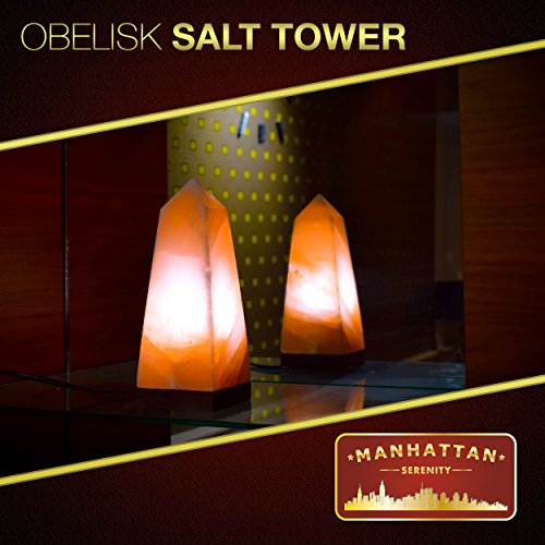 Manhattan Serenity Himalayan Salt Lamp. Serenity salt tower design with 6ft UL-Certified dimmer switch and 15watt bulb. Authentic Carved Himalayan rock crystal with neem wooden base.