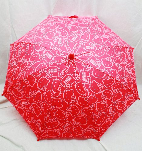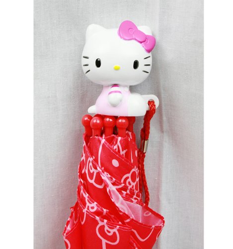 Kid size umbrella. Measures approximately 20" Tall. Easy sliding mechanism avoids pinch points. Velcro snap secures umbrella when not in use. 3D Hello Kitty Figurine measures approximately 2.5" Tall.