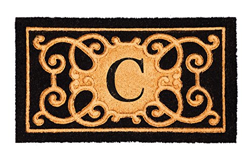 Evergreen Debossed Monogram Letter C Coir Mat, 16 x 28 inches