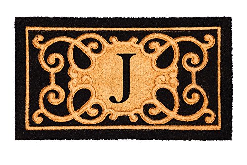 Evergreen Debossed Monogram Letter J Coir Mat, 16 x 28 inches