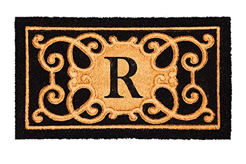 Evergreen Debossed Monogram Letter R Coir Mat, 16 x 28 inches