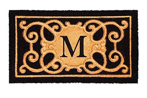 Evergreen Debossed Monogram Letter M Coir Mat, 16 x 28 inches