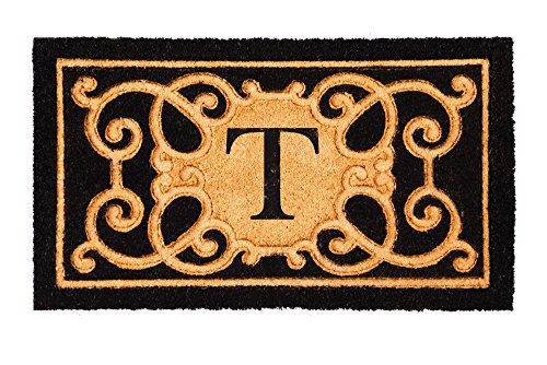 Evergreen Debossed Monogram Letter T Coir Mat, 16 x 28 inches