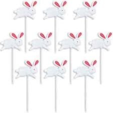 -. Feature : Package of 10 bunny picks / Use in Sandwiches, cupcakes, cakes, brownies, or other treats. / picks are 3 inches tall and the bunny is about 1.5 inches wide / Plastic