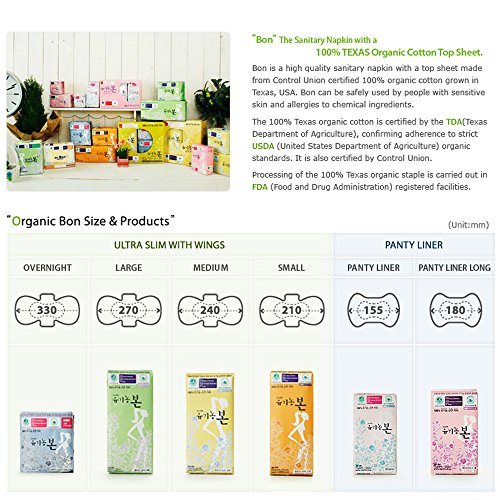 Korean Bon Organic Cotton Sanitary Pads with Wings Small 28 Count