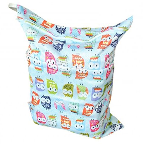 A truly wonderful bag that allows you to carry your wet and dry items in the same bag. Each bag contains a "wet" section that is sewn and sealed for no wicking or leaking AND a zippered dry section along with a clever snap handle for easy carrying. Carry all your items in one bag while keeping your dry items dry and your wet or soiled items separate. Truly an all in one bag! Size: 30cm x 36cm (approx.:11.5 in x 14 in) Holds approximately 5-7 cloth diapers *NOTE: Wash temperature: less than 86 degrees Fahrenheit to avoid the TPU from delaminating.