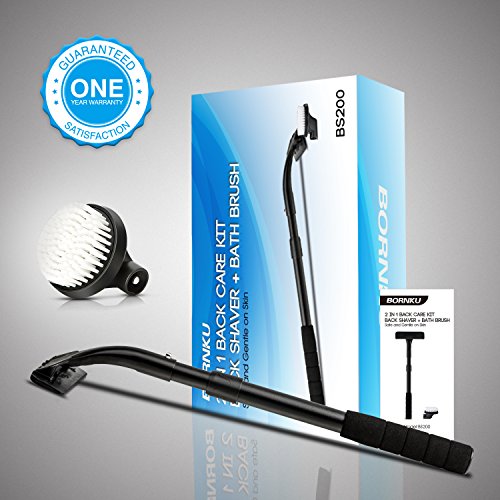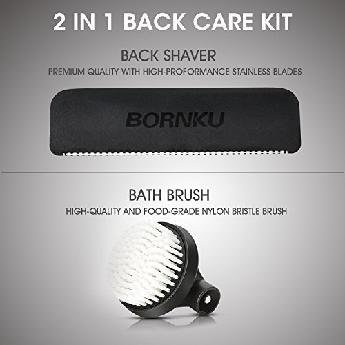 [2 in 1] Bornku Back Shaver and Scrubber for Men BS200 Body Groomer and Bath Brush with Adjustable Long Handle for Shower Hair Care Kit with Width...