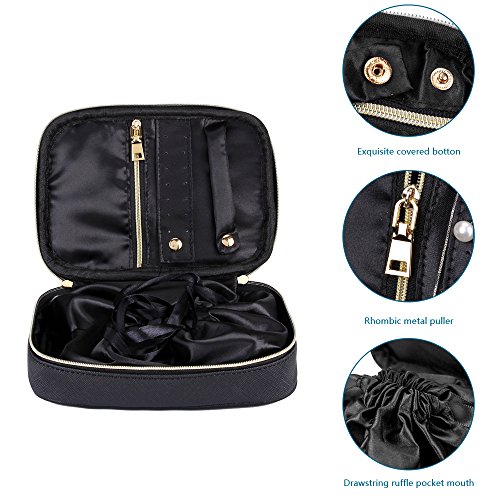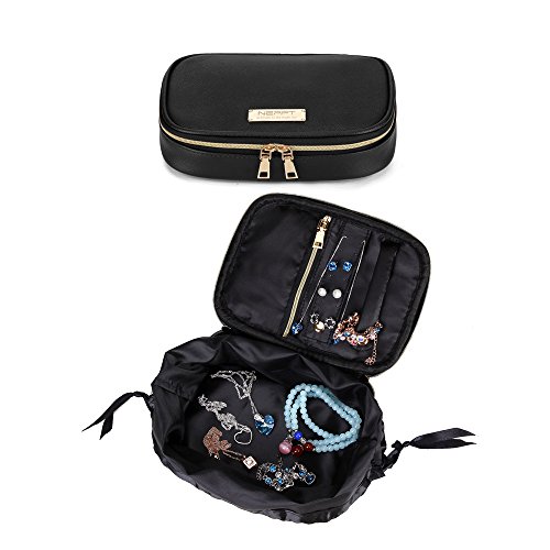 Travel Jewelry Organizer Bag Case Fashion Holder Rolls PU Leather Box with Zipper Women Jewelry Portfolio Bags Necklace and Earring Drawer Storage Small Pouch (Black)