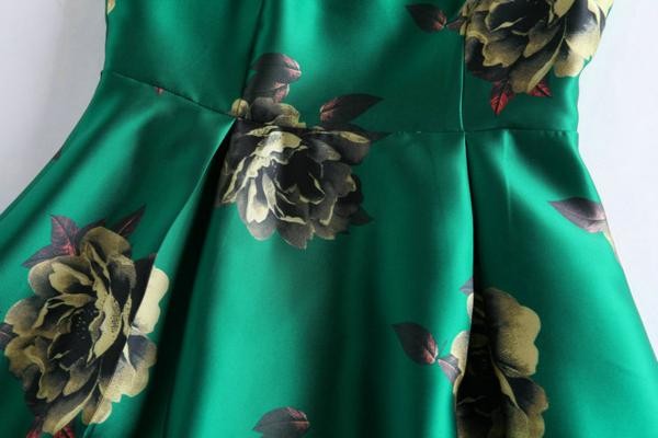 大きな花柄プリント ノースリーブ フレアスカート Aライン パーティードレスワンピース/M
