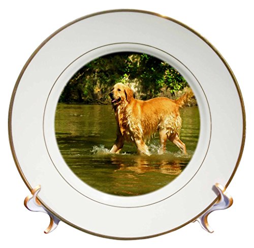 3dRose cp_203726_1 Print of Golden Retriever Painting Porcelain Plate, 8"