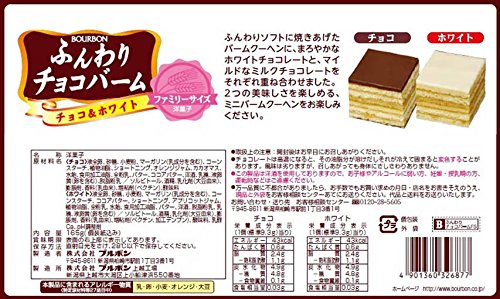 原材料:<チョコ>液全卵、砂糖、小麦粉、マーガリン(乳成分を含む)、コーンスターチ、植物油脂、ショートニング、オレンジジャム、カカオマス、水飴、食用加工油脂、全粉乳、バター、ココアバター、洋酒、乳糖、液卵黄(卵を含む)、脱脂粉乳/ソルビトール、酒精、乳化剤(大豆由来)、膨脹剤、香料(乳由来)、増粘剤(ペクチン)、酸味料 <ホワイト>液全卵、砂糖、小麦粉、マーガリン(乳成分を含む)、コーンスターチ、ココアバター、ショートニング、アプリコットジャム、植物油脂、全粉乳、水飴、食用加工油脂、バター、洋酒、脱脂粉乳、乳糖、液卵黄(卵を含む)/ソルビトール、酒精、乳化剤(大豆由来)、膨脹剤、香料(乳由来)、増粘剤(ペクチン、加工デンプン)、酸味料、乳酸Ca、pH調整剤