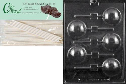 Cybrtrayd 45St25-S107 Volleyball Lolly Sports Chocolate Candy Mold with 25-Pack 4.5-Inch Lollipop Sticks
