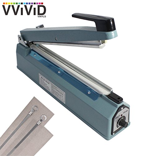 VViViD REV 12" Impulse Heating Bag Sealer Machine with Cutting Blade, Extra Metal Elements and Teflon Strips