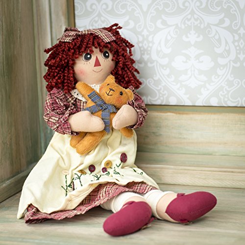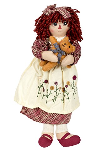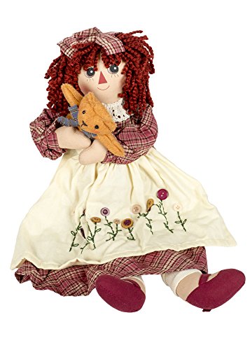 Girl Raggedy with Kitty Cat 19 inch Cotton Blend Plush Table Top Figurine Doll