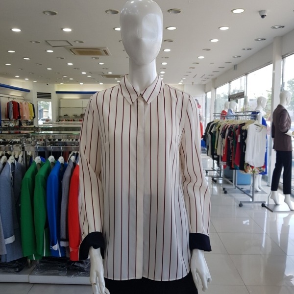 셔츠형 스트라이프 기본 블라우스-CA7F8-WRC010-와인/프린터