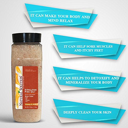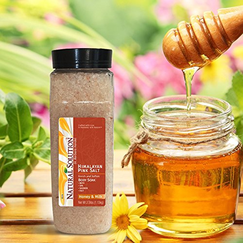 Himalayan pink Salt Soaking Solution, Soften & Nourish with Milk and Honey, 2.5 lb. Jar by Natural Solution Pink Salt Company