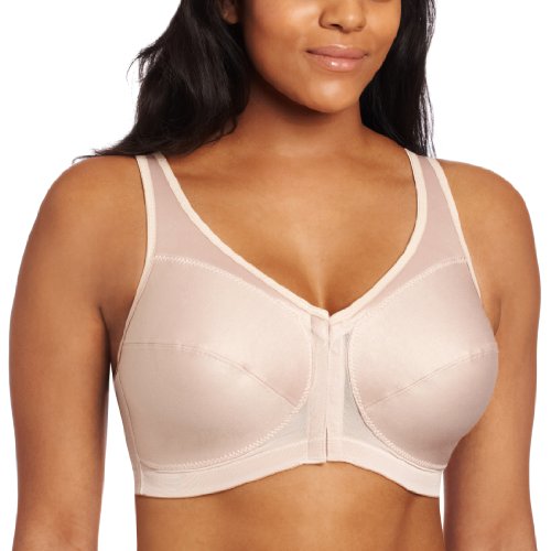 The ultimate in full-figure back support wire-free bra, Stretch polyester and cotton blend. Posture back is criss-crossed with cotton/lycra bands, Criss-cross bands are designed to give ultimate support. Seamed full cups with supportive inner slings Glamorise, Style Number: 1265.Feature