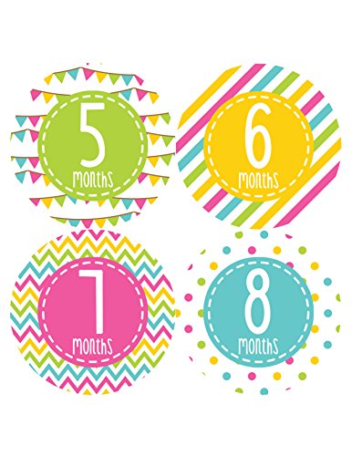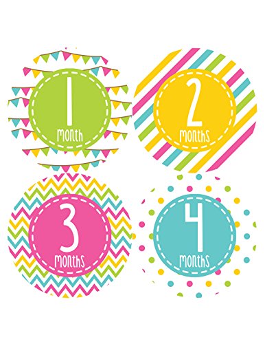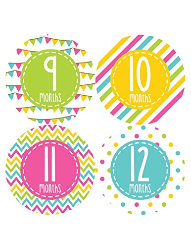 -. Binding : Baby Product -. Brand : Months In Motion -. Color : coral, aqua -. Department : Baby-girls -. EAN : 0764130838451 -. Feature : Just peel, stick, and take a photo to document your baby's first year! / Makes a wonderful shower gift! / The perfect baby photo prop! / P.R.Inted on white matte sticker so no glare in photos / Includes 12 precut stickers that are approximately 3.93 inch diameter -. Label : Months In Motion -. LegalDisclaimer : Stickers are to be used under adult supervision only. Do not leave stickers on baby unattended. -. Manufacturer : Months In Motion -. Model : 346 -. MPN : 346 -. PackageQuantity : 12 -. PartNumber : 346 -. ProductGroup : Baby Product -. ProductTypeName : BABY_PRODUCT -. Publisher : Months In Motion -. Studio : Months In Motion -. Title : Months in Motion 346 Monthly Baby Stickers Baby Girl Months 1-12 Milestone -. UPC : 764130838451
