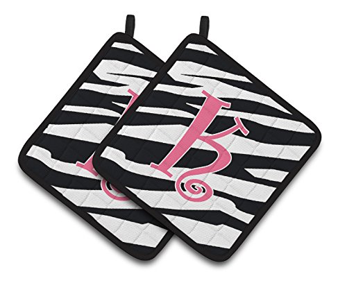 Caroline's Treasures Monogram Initial K Zebra Stripe & Pink Pair of Pot Holders CJ1037-KPTHD, 7.5HX7.5W, Multicolor