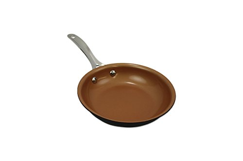 Cooking is a breeze with this heavy duty, high performance, non-stick ceramic coated copper pan! The aluminum bottom allows for even heat distribution for perfect cooking every time! You can even use it in the broiler up to 450 degrees!Feature