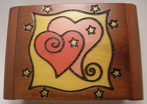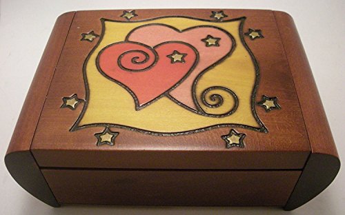 Secret Heart Linden Wood Polish Jewelry Keepsake Box Two Hearts Valentine's Day Present