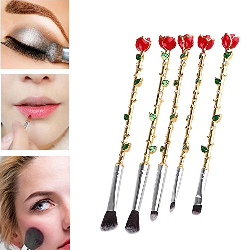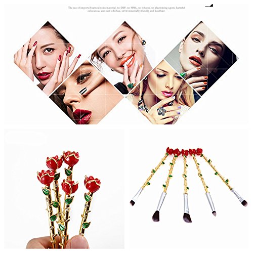 - New Style Makeup Brush:5pieces Harry Potter Rose flower Makeup Brush,Including Eye shadow brush+Blooming powder brush+Detail brush+Nose brush+Eyebrow brush,Package is Flannelette bag,Material is Aluminum tube and alloy handle,bristles are mainly fiber wool,The touch is very soft and Brush grasp powder is fine.Weight is 135g/set.If you are a boy,it is is the best gift for your girl friend.