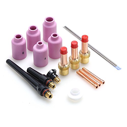 Rupse 18Pcs TIG Welder Torch Cup Collet Body Nozzle Tungsten Gas Lens Kit WP-17 WP-18 WP-26 Lanthanated Tungsten Electrodes WL20(18Pcs-Small)