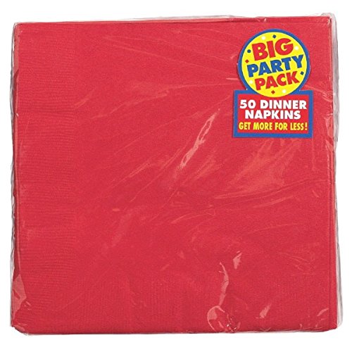 Party Perfect Vibrant 2-Ply Dinner Napkins Tableware, Apple Red, paper , 8" x 8", Pack of 50