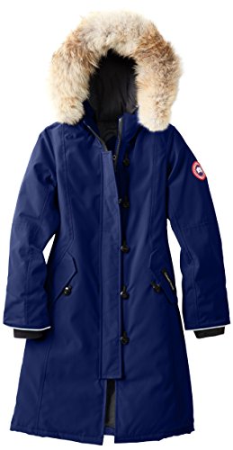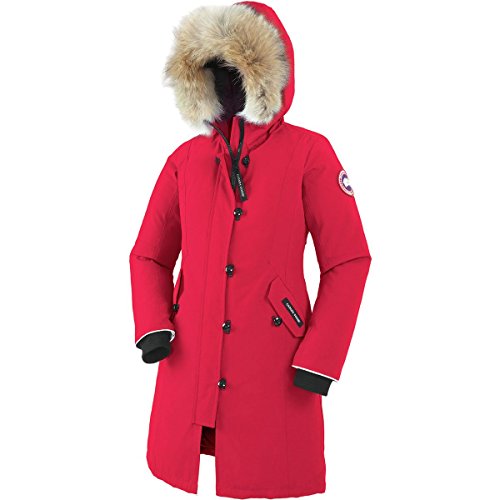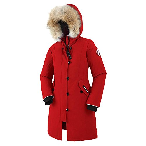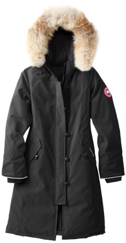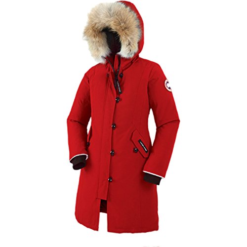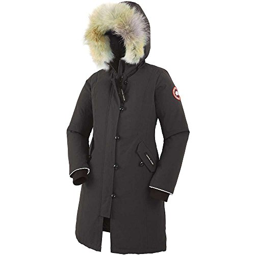 FEATURES of the Canada Goose Girls' Brittania Parka Easy to care for: remove fur ruff, machine wash cold in a front loading washer, and tumble dry low Adjustable down filled hood is removable, and has a removable Coyote fur ruff to make cleaning easier Centre front YKK 2-way locking zipper Storm flap over centre-front zipper secured with military buttons Two lower fleece lined pockets secured with buttoned pocket flaps Interior zippered security pocket with wire exit Elasticized interior loop to hold headphone cord in place One interior stretch mesh pocket Internal glove hooks, can keep gloves/mittens from getting lost, or be clipped up and away when not in use Elasticized centre back waist for an adjustable fit Recessed rib knit cuffs to keep out the cold Gosling Graduate System allows the sleeves to lengthen by 1 1/2" to grow with your child Reflective piping on the opening cuff edges for visibility Longer thigh-length for more protection from the cold and the windFeature