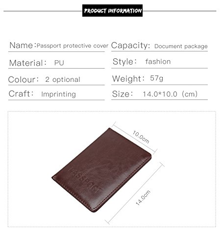 Product Description Specifications: Name:Passport Cover Material: PU Leather Color: As The Picture Shows,there could be some slight difference Features: FASTENING CLOSED SEAM.First -class sewing stitches brings a nice looking and quality assured. EXCELLENT QUALITY HARDWARE.We guarantee the color fastness and quality of the hardware,it is durable in use and will not fade with time goes by. TRAVEL SMART.Store your travel documents in one slim and lightweight bag and never miss or lost them if you really needed. We Simplify Travel Experience with your hands free. TRAVEL CLASSICAL. Vintage looking, Multi-functional design, Soft and Comfort touching, various colors to match your taste.Perfect travel gift for everyone.