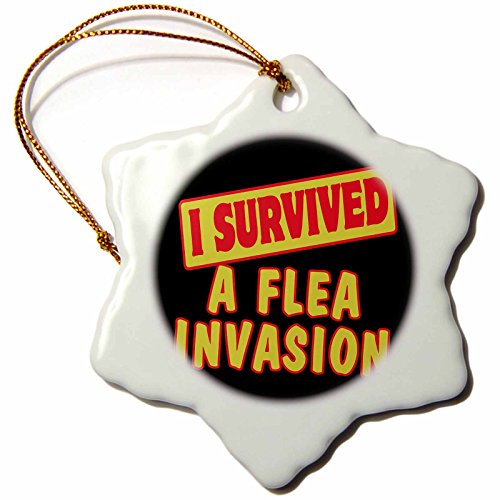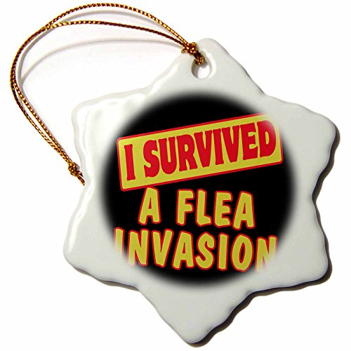 3dRose orn_117603_1 I Survived a Flea Invasion Survival Pride and Humor Design Snowflake Porcelain Ornament, 3-Inch