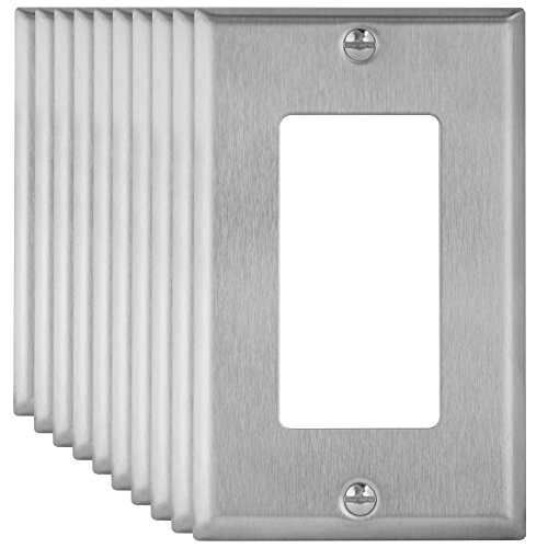 Decorator Switch Metal Wall Plate by Enerlites 7731 Electrical Outlet Cover, 1-Gang Standard Size, Unbreakable Stainless Steel, Decorative GFCI Receptacle Power Light Panel Fixture, 10 Pack