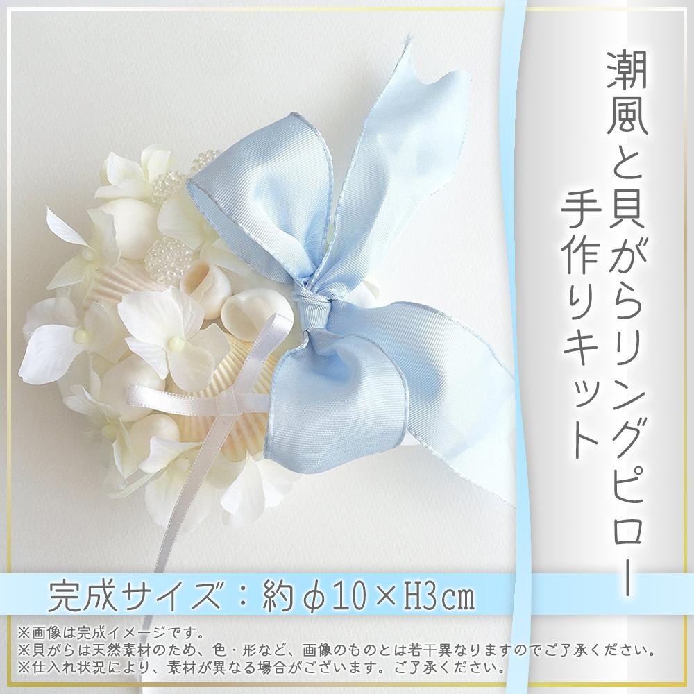 | ウエディング小物作家がデザインするナチュラルで大人可愛いリングピローの手作りキットです。糸針を使わず、グルーガンや布用接着剤で、貼り付けていくだけ♪天然の貝がらと、アーティシャルフラワー、「サムシングブルー」のリボンでアレンジしました。海、ブルー、夏、ハワイ、グアムなどのリゾートウエディングにオススメなウエディングアイテムです。 |