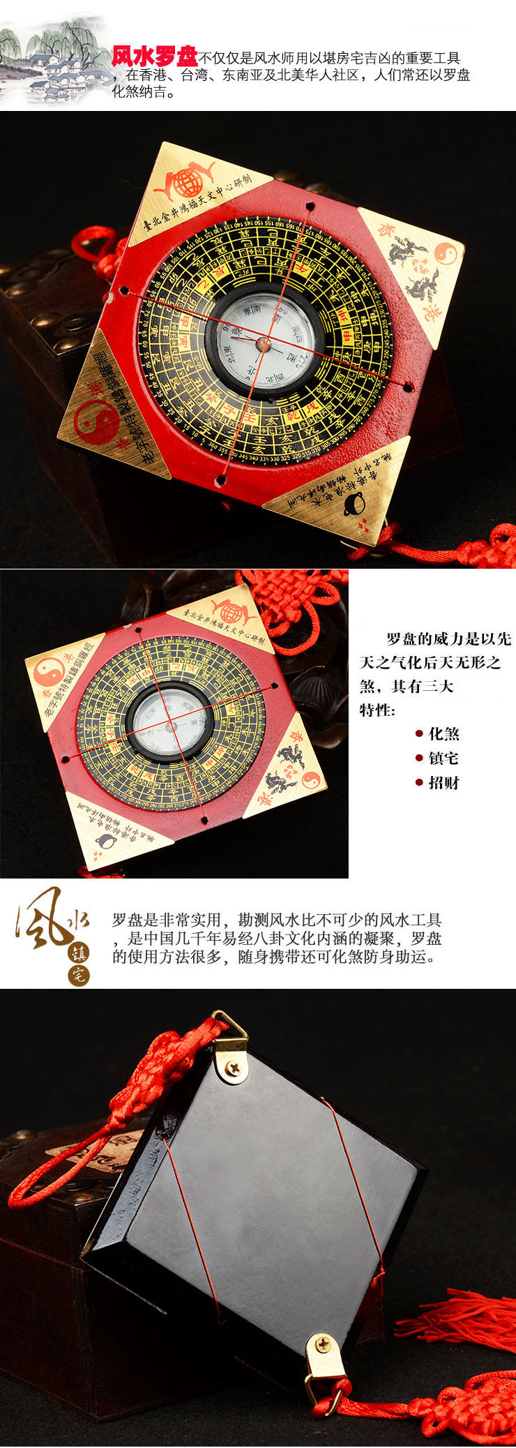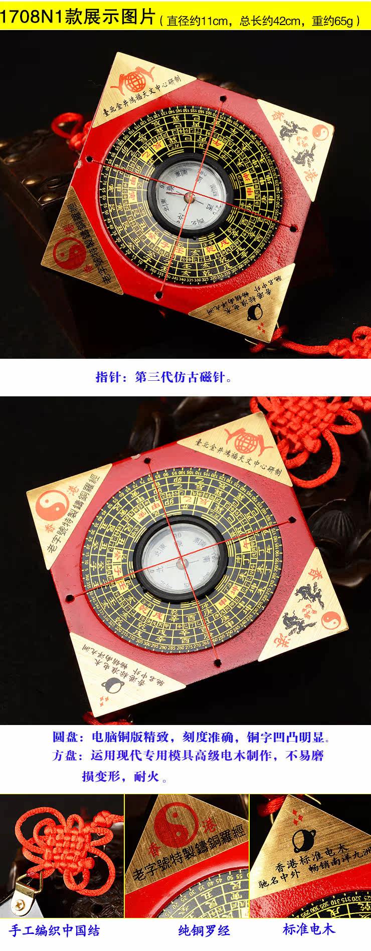 风水罗盘综合盘挂件专业电木纯铜八卦镜罗经仪综合盘