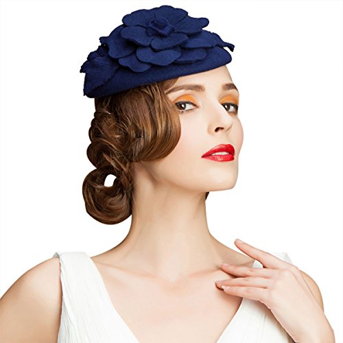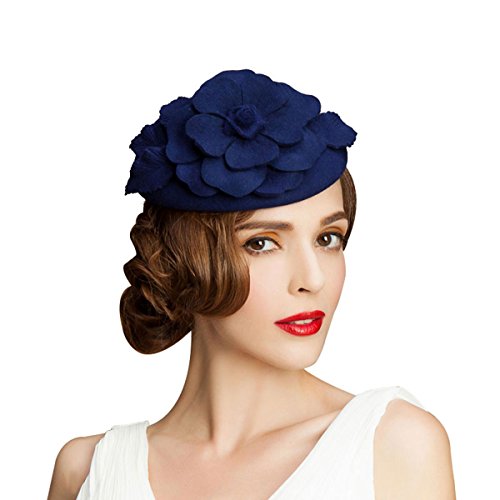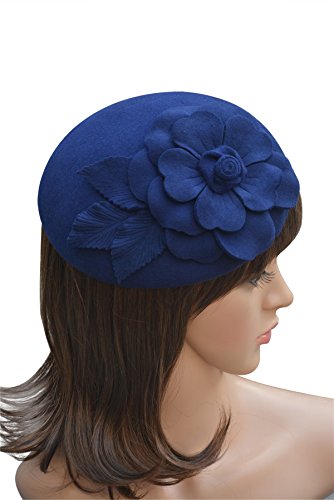 Flower Womens Dress Fascinator Wool Pillbox Hat Party Wedding A083