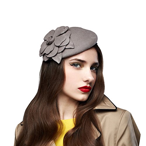 Product DescriptionSo elegant and vintge wool felt fascinator in winter or autumn. 3D Flower trimmed on the fascinator base,all made of wool felt.0