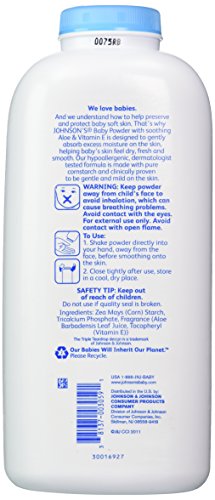 Johnson's Baby Powder, Pure Cornstarch, Aloe & Vitamin E, 22 Ounce (Pack of 2)