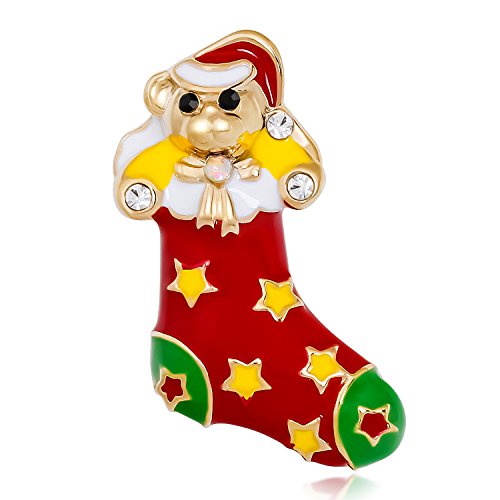 LY8 Fashion Women Gold Tone Crystal Enamel Brooch Pin Christmas Decorations Holiday Gift Socks Bear