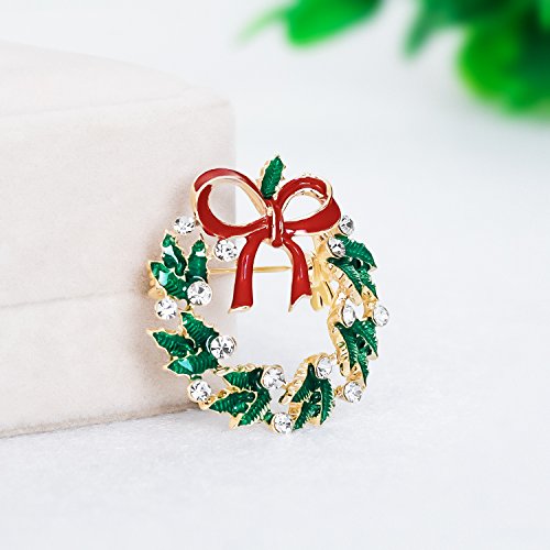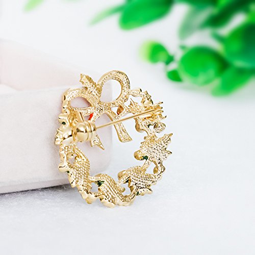LY8 Christmas Accessories Gold Tone Crystal Enamel Brooch Pin Christmas Decorations Holiday Gift Colorful Wreath